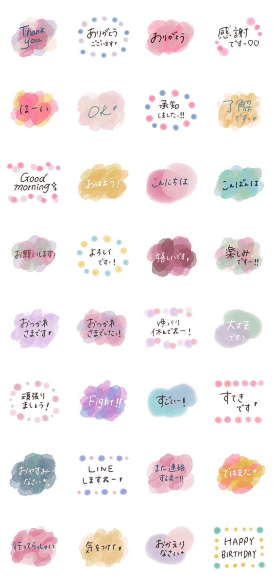 大人女子にぴったり♪ おしゃれでかわいい水彩フレーズ。 毎日のあいさつや日常に使える便利スタンプです。 シンプル/癒し/メッセージ/毎日使える/日常/ふんわり/かわいい