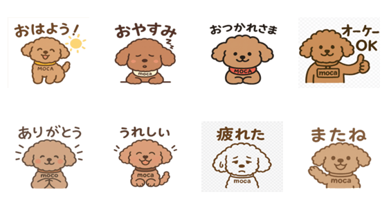 Meet moca, the adorable brown poodle! From "Good morning" to "Good night," moca expresses various emotions. Convey thanks or show you're tired.