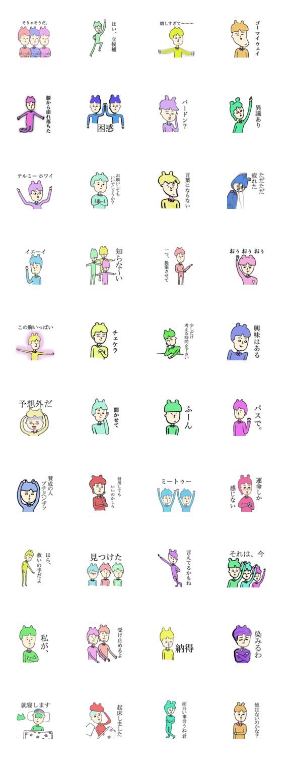 カラフルな生き物のスタンプです。文字を打ち込むのが面倒な時などにお使いください。