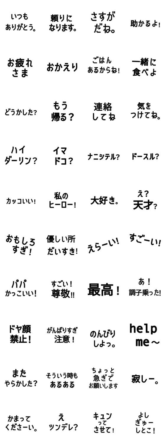 旦那さんへの連絡やひとことに。送ったら嬉しい、やる気が出る。旦那様が優しくなるかも?なスタンプです。