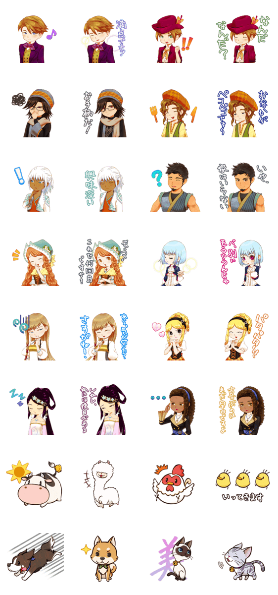 「牧場物語 Let's!風のグランドバザール」のスタンプが登場!人気のキャラクター達やかわいいどうぶつたちと、ほのぼのトークを楽しみましょう!