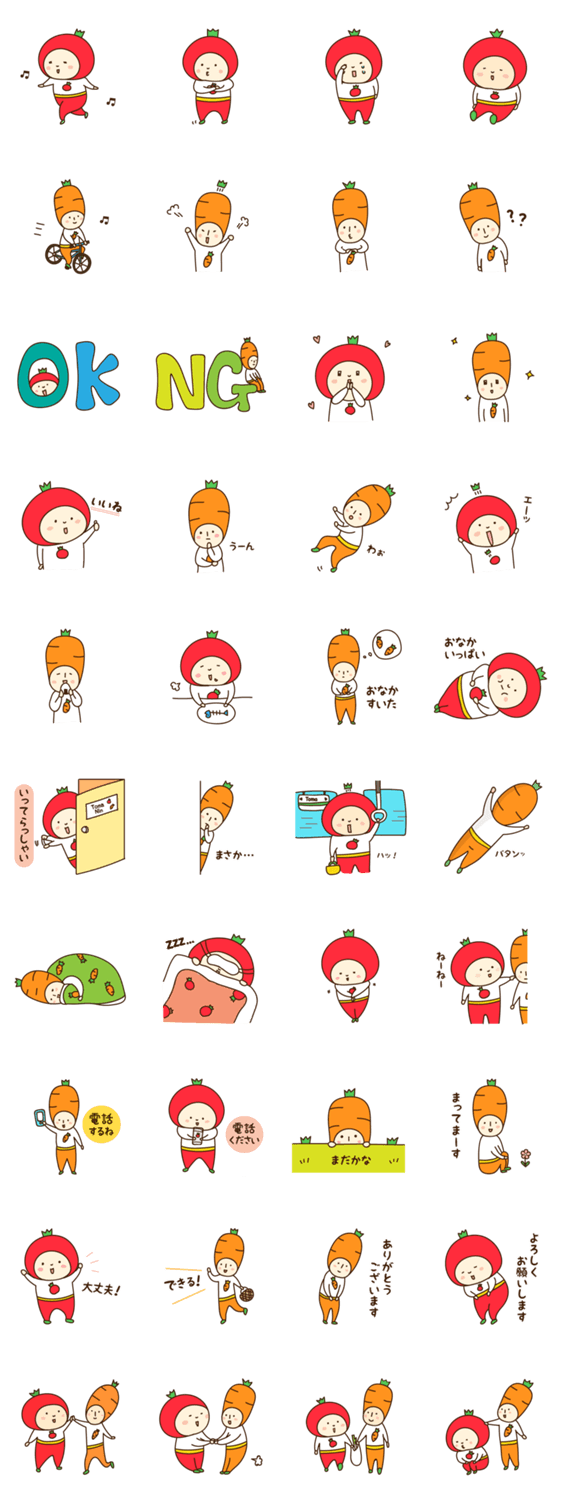 とまとさんとにんじんさんはいつも仲良し。友達や家族と一緒に使ってね♪