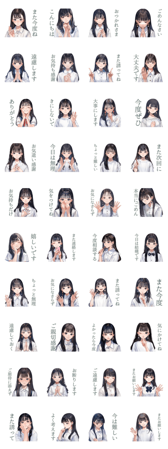 清楚で上品な女の子。普段使いにぴったりなきれいめ返信スタンプです。敬語/挨拶/丁寧