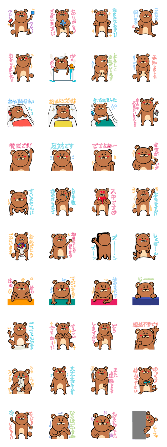 ゆるぽてキャラ「ぽてクマ」の日常的によく使えるスタンプです。ゆるくまったり敬語編。