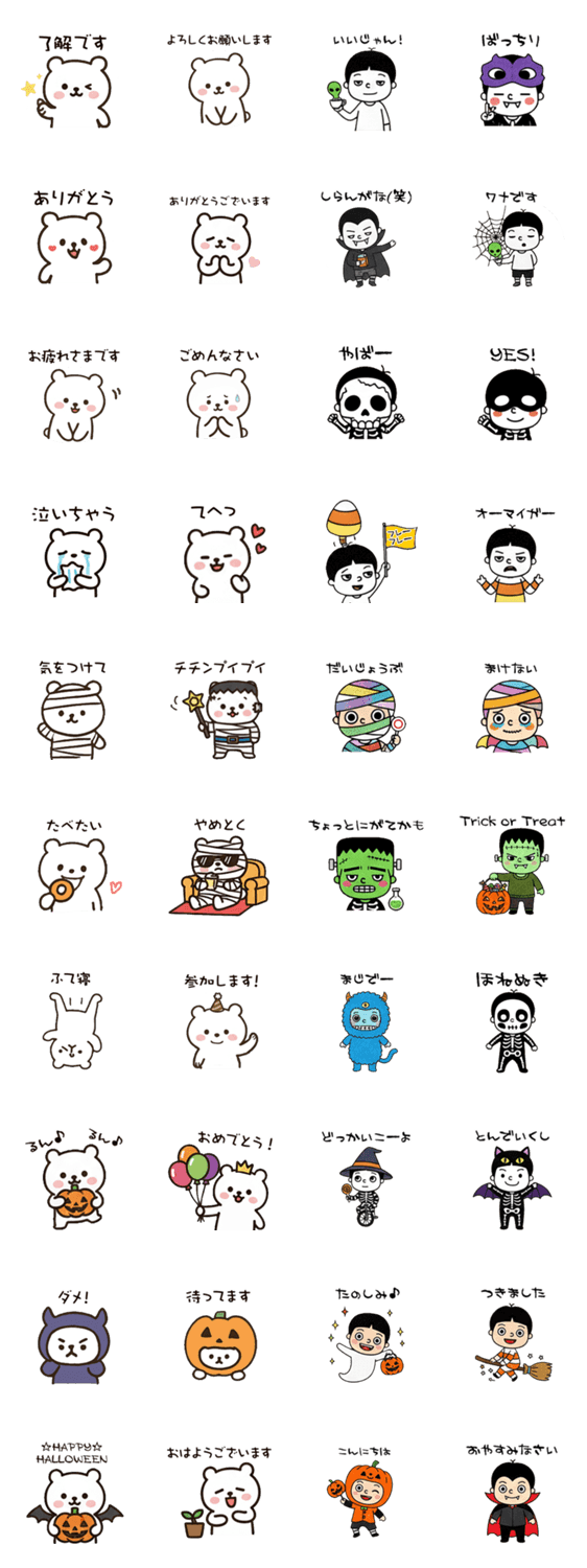 ママ友・友達、両方に使える欲張りセット!日常スタンプとシュールなネタスタンプを両方収録。カボチャ入りだけど一年中使えます!