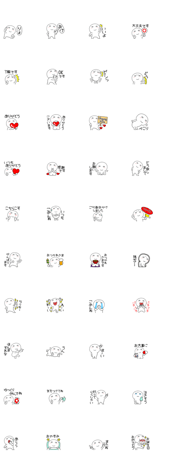 小さくて主張し過ぎない毎日使える丸くて白いゆるい感じのキャラクターのスタンプです