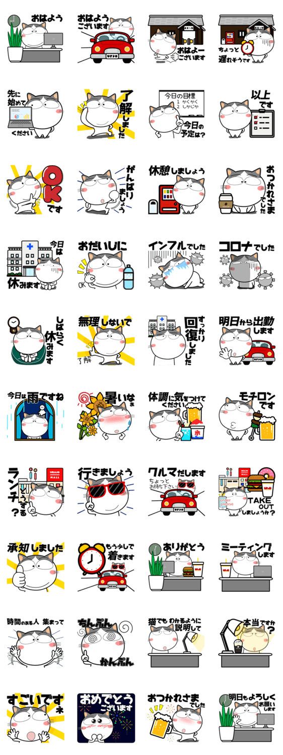 ハチワレ猫のビジネス向け敬語スタンプ。仕事でよく使う言葉を揃えました。ずっと使える、毎日使える。敬語なので誰でもOK。ネコ好きの方へ。