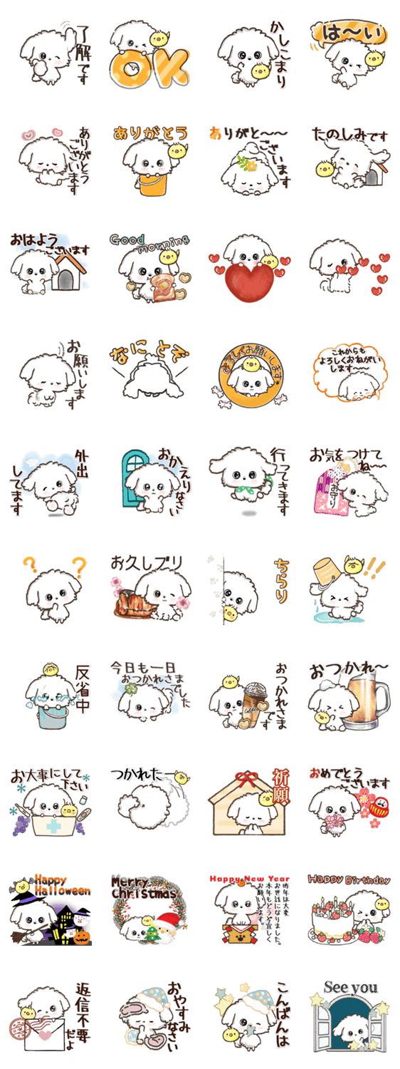 キュートなワンコが、大切な人に丁寧に気持ちを優しく伝えます♡マルチーズ/挨拶/愛犬/モフモフ/毎日/尊敬語/ありがとう/おはよう/グループトーク/Bnasuko【びーなすこ】