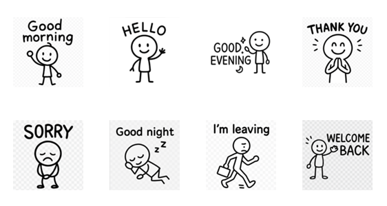 スティックピクチャーが様々なあいさつを表現するLINEスタンプです。日常のコミュニケーションをシンプルで可愛らしく彩ります。どんなトークルームにも馴染みます。