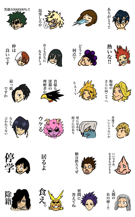 雄英高校ヒーロー科1年A組のスタンプです。 ※LINE Creators Collaboration 僕のヒーローアカデミア参加スタンプです。