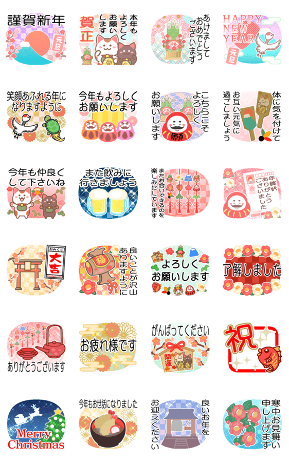 2025年あけおめスタンプの一部の画像修正版/毎年使える/年賀状/あけおめ/かわいい/キュート/使いやすい/年末年始/気遣い/敬語/ゆめかわ/冬/年越し/あいさつ/でか文字