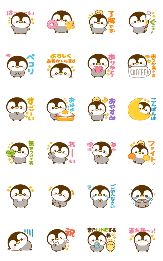 小さなペンギンの赤ちゃんぺんぺんの基本のアニメーションスタンプです。