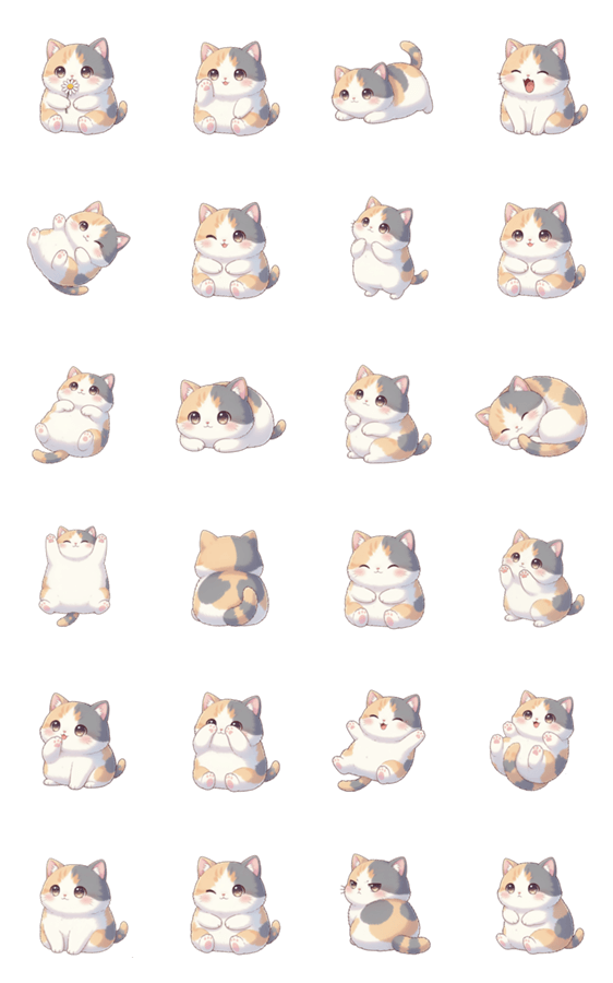 A round, sweet calico kitty that's perfect for when you need a little extra hug in your chat. Send the cuteness with this adorable blob of fur!
