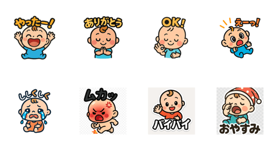 ムチムチほっぺが可愛い赤ちゃんがあなたの気持ちを代弁!「やったー!」から「ムカッ」まで、日常で使える感情をオーバーに表現します。ママ友や家族との会話にピッタリ!
