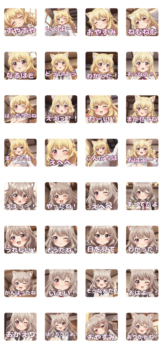 き髪スタンプ(はちみ&みなみ)