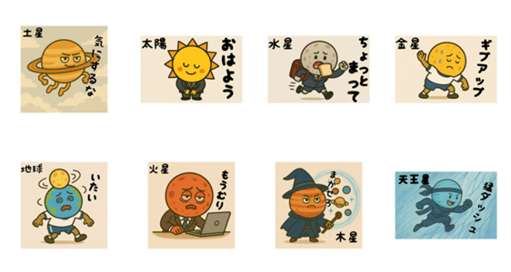 太陽系の惑星の特徴をベースを擬人化 -LINEスタンプマニア