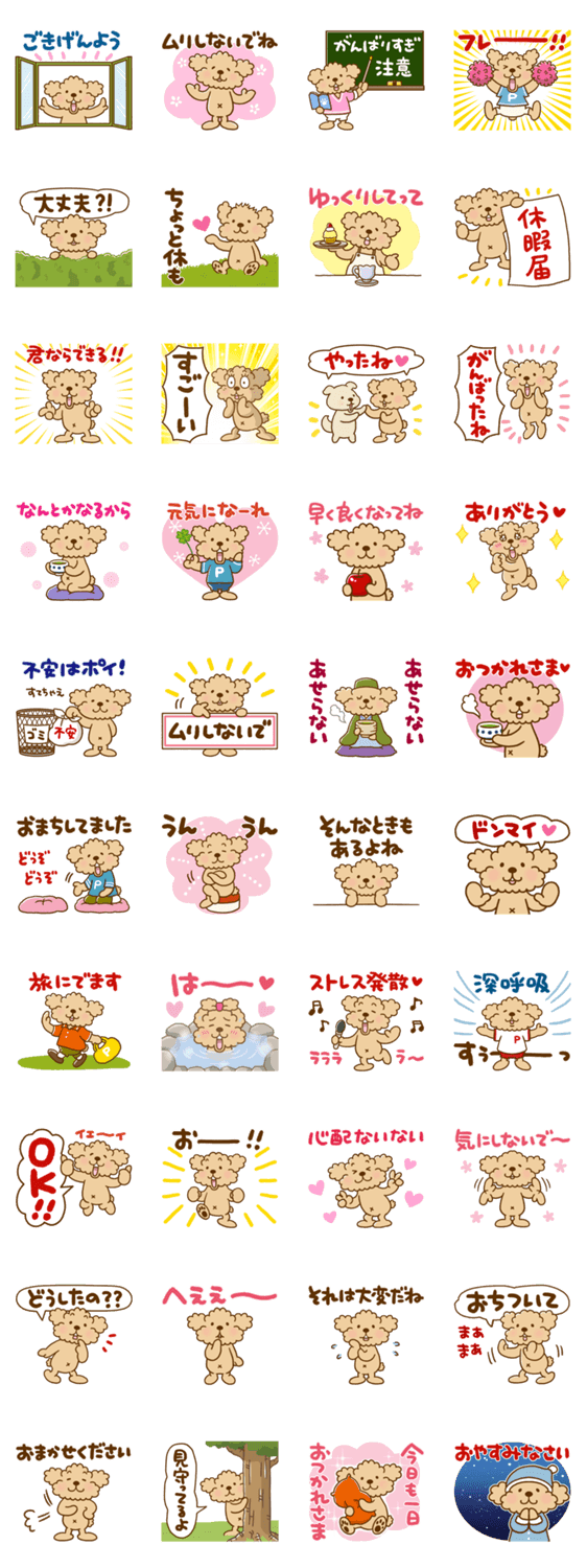 トイプードルのぷう太郎の応援と癒やし専用のスタンプです。お友達やご家族にエールや元気パワーを送りたいときに使ってね。応援/癒やし/励まし/犬