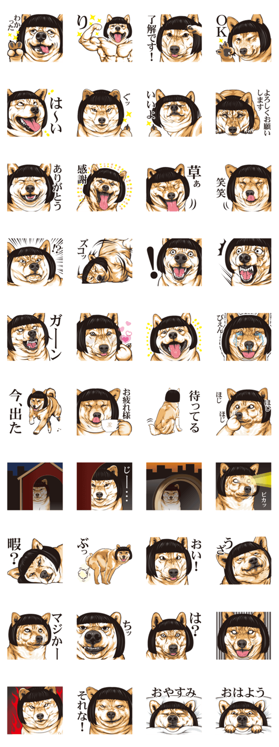 微妙に少しウザいオカッパ柴犬だよ!日常でよく使えてうざい変顔もありウザく煽るのも可能。マッスル返信、みんなの変顔、しろめ爆弾、微妙にうざいシリーズのスタンプ69作
