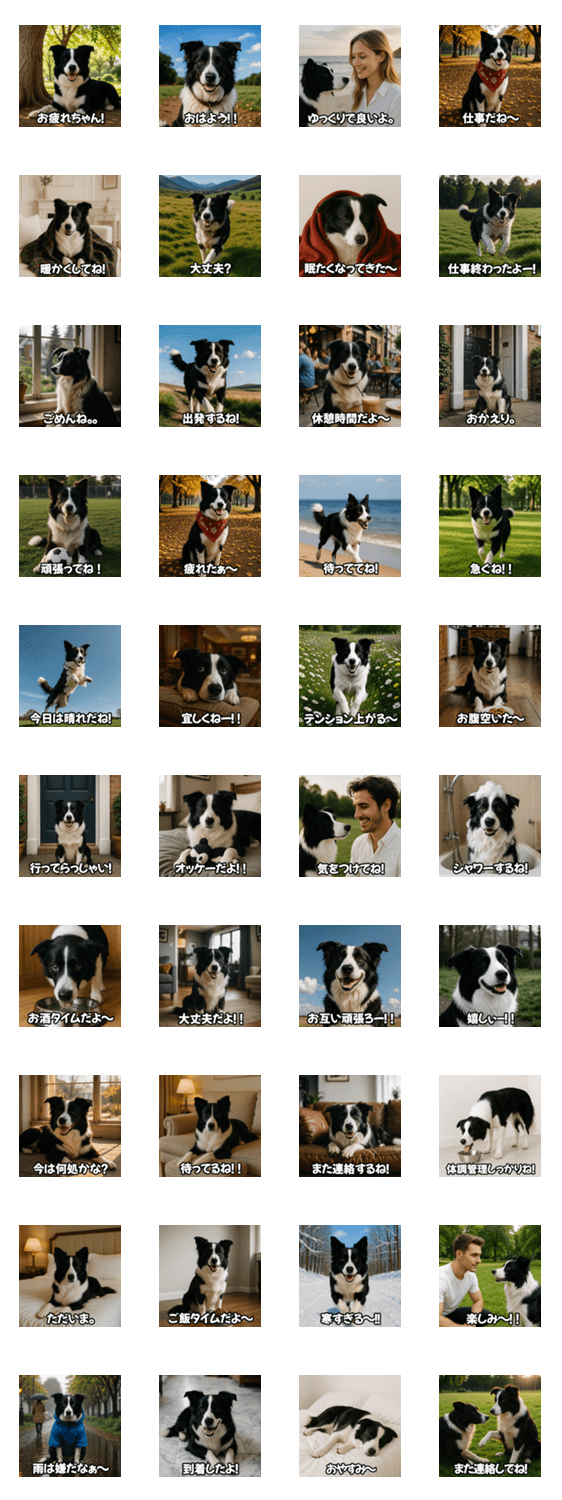 愛らしいボーダーコリーの笑顔や仕草がいっぱい!犬好きにぴったりのスタンプセットです。