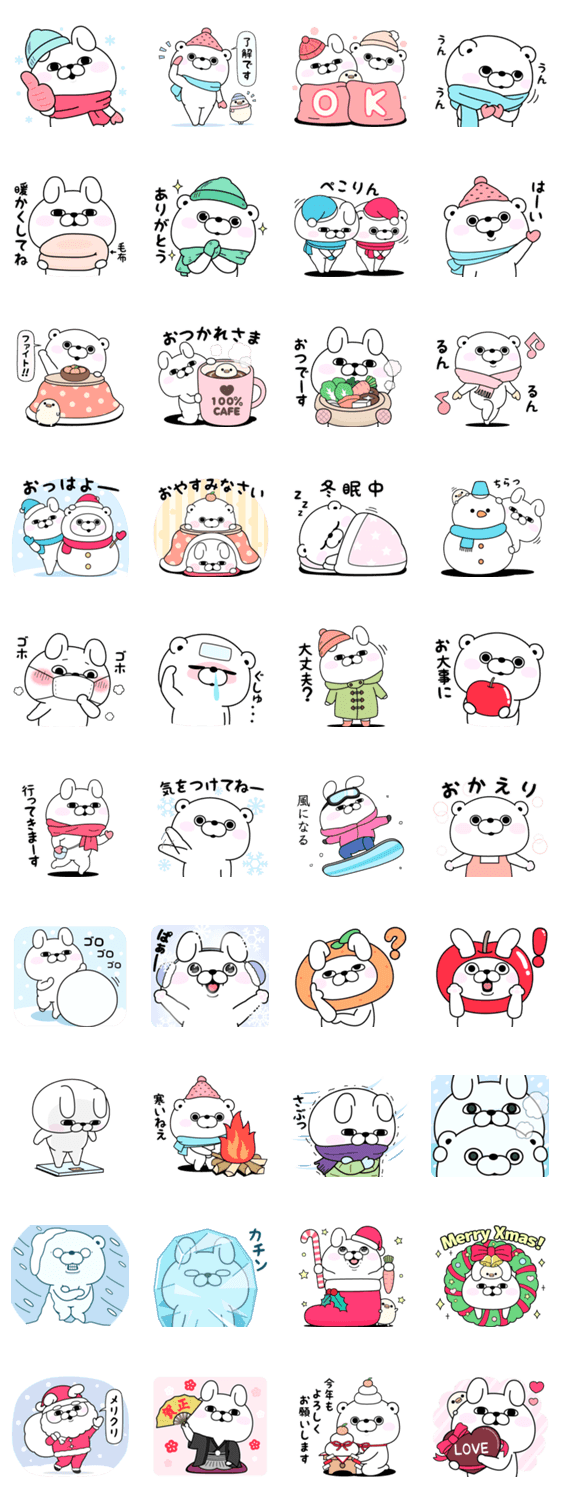 うさぎ&くま100% 冬の日常 -LINEスタンプマニア