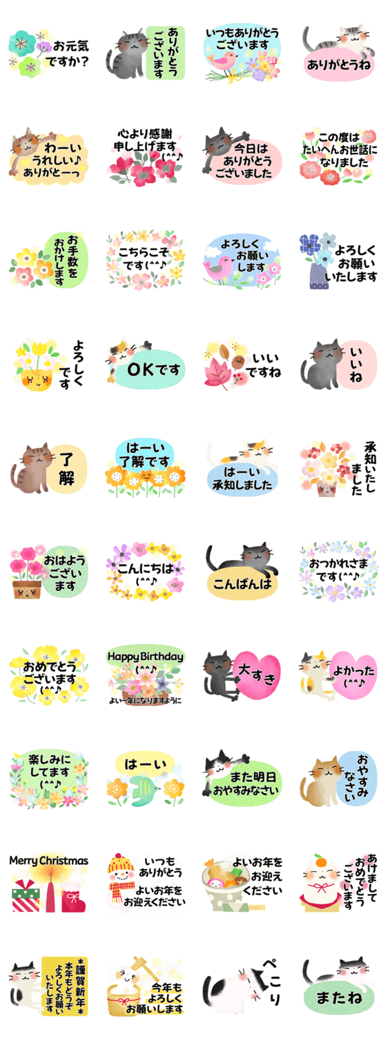 ちょうどいいサイズ感*花とねこの癒し -LINEスタンプマニア