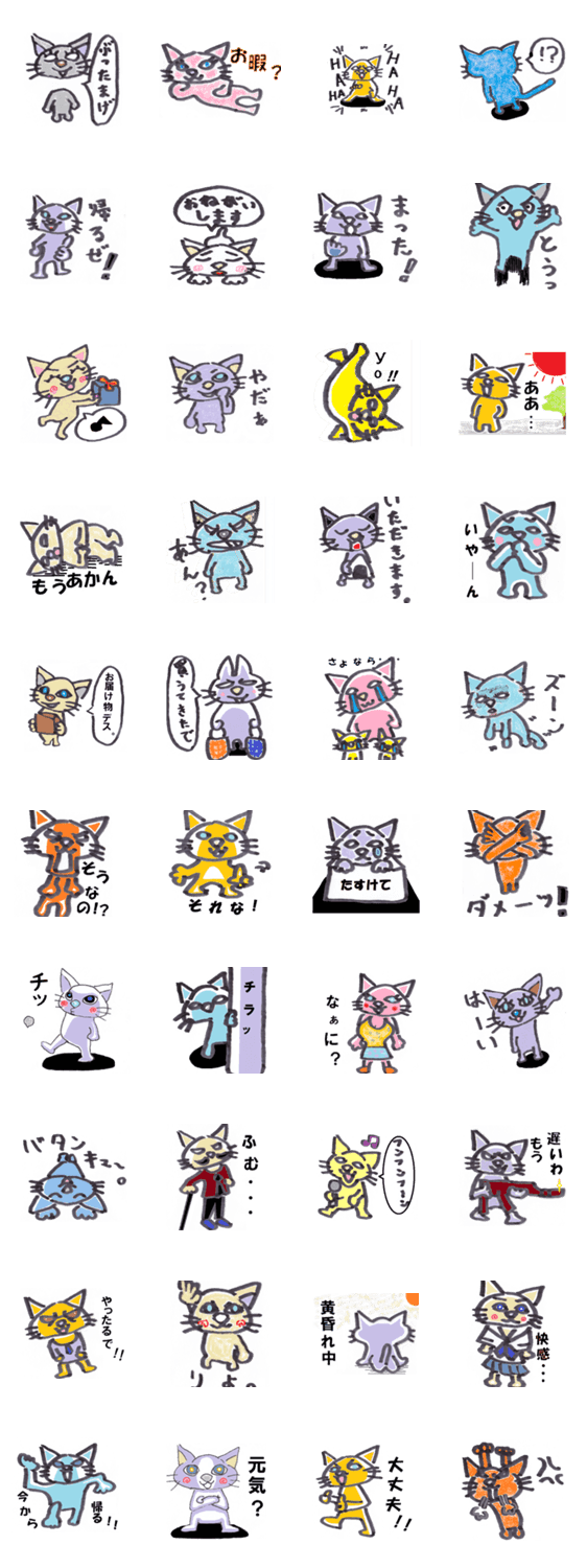 コテツのスタンプです。コテツや様々な表現豊かなキャラクタ-が描かれています。