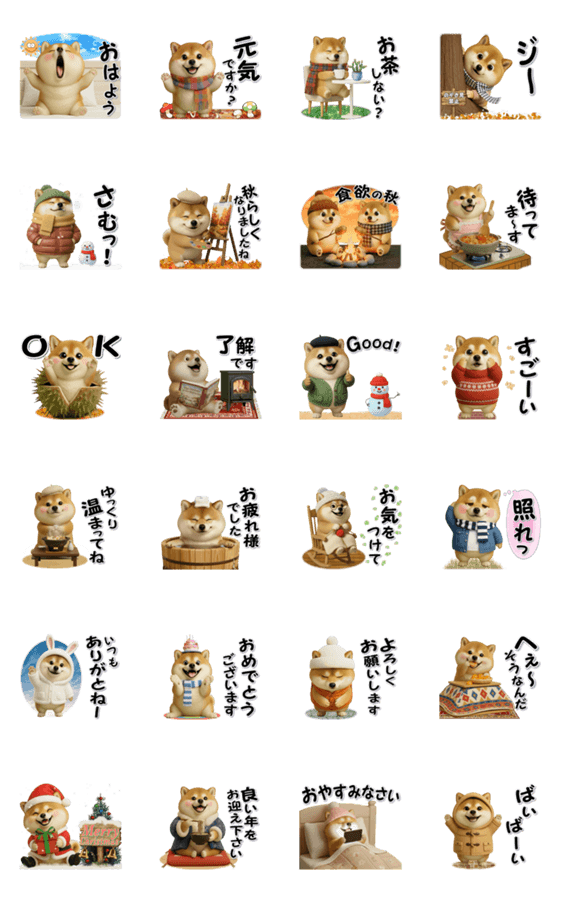 コミカルに動く柴犬(秋→冬 編) -LINEスタンプマニア