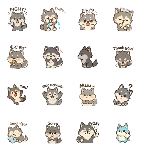手書き風の可愛いオオカミの日常会話で使用できるスタンプです。