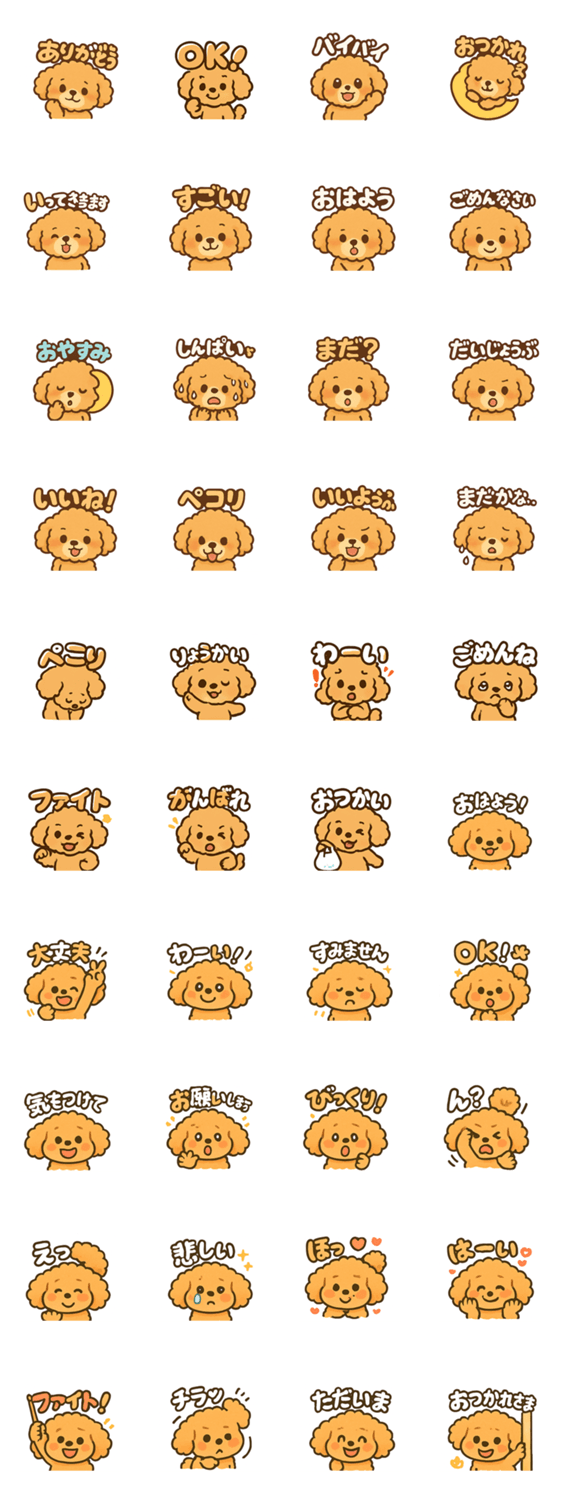 思わず笑顔になる、かわいすぎるトイプードルのスタンプ 日常会話で使いやすい言葉がたくさん入ってます♪