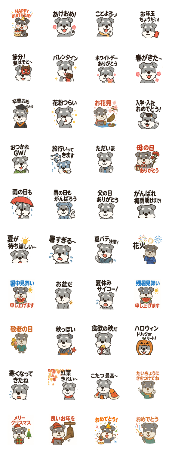 シュナウザーの一年まるごとスタンプ40個 -LINEスタンプマニア