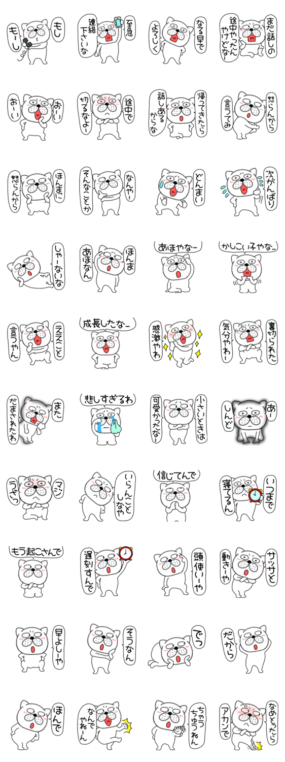 関西弁で毎日使える少し切れ気味のブサ可愛い犬のスタンプです
