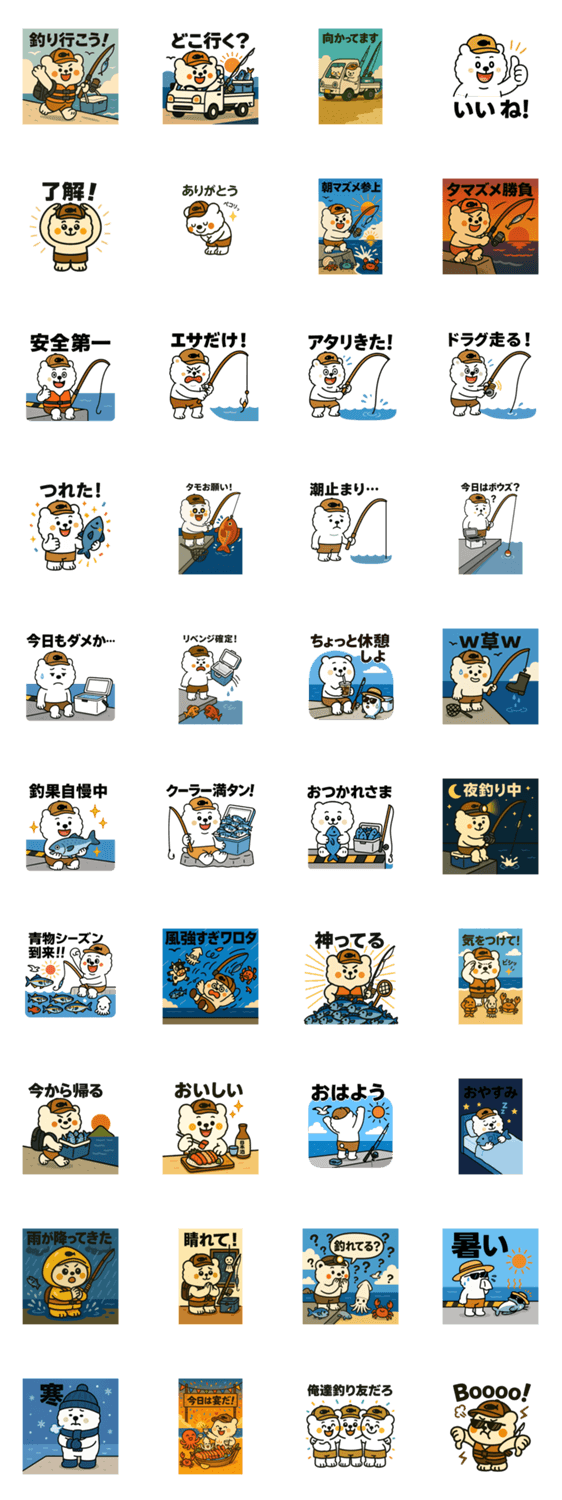 可愛いクマで釣りあるあるを表現しています。釣り好きの方にもそうでない方にも使って頂きたいスタンプです。