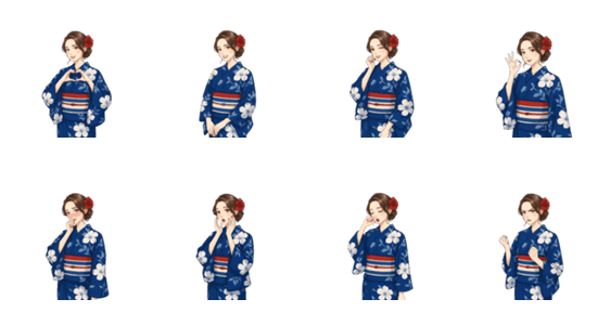 浴衣姿 青 -LINEスタンプマニア