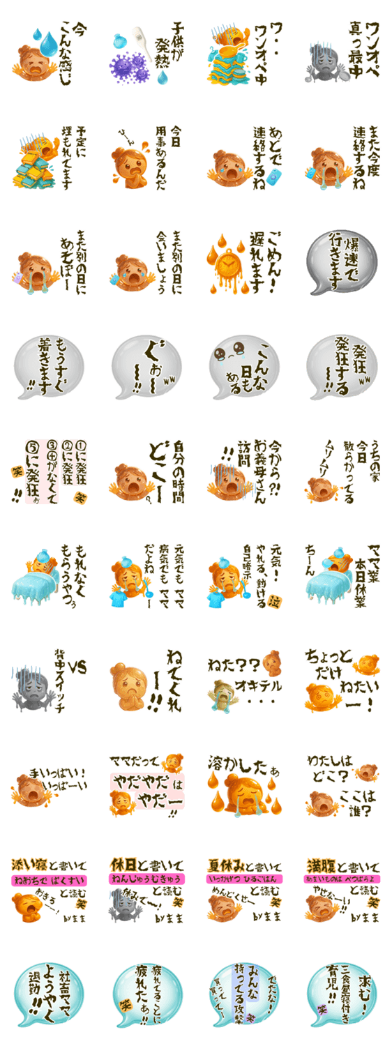 叫びたいぐらい忙しい時!ママ友、親からの連絡に、スタンプだけであなたの叫びと忙しさを伝えられるスタンプです♪