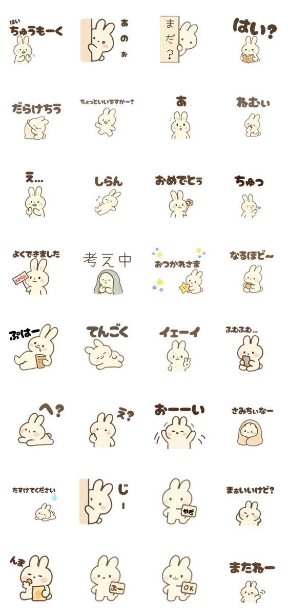 ちょっとテキトーな可愛い白うさちゃん。大人コーデに似合う可愛いやんわりとしたカラーと言葉を使用しました。