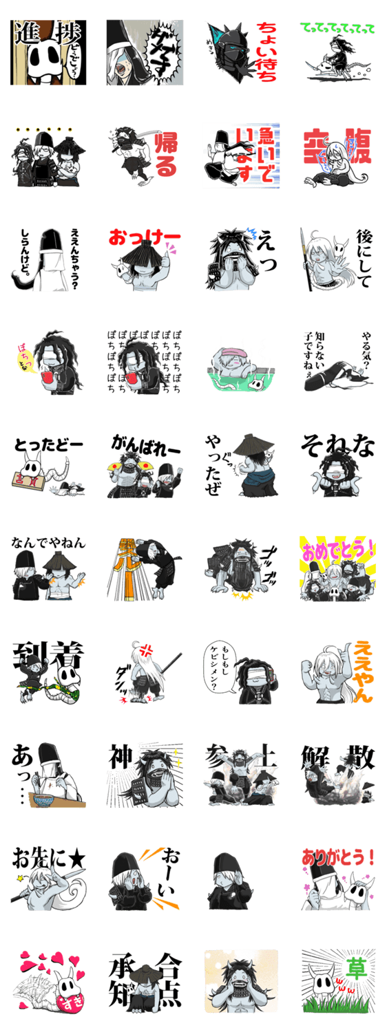 日常系の時間遡行軍のゆるいスタンプ。 使えば使うほど味のあるトーク画面になるとかならないとか。 ※LINE Creators Collaboration『刀剣乱舞ONLINE』参加スタンプです。