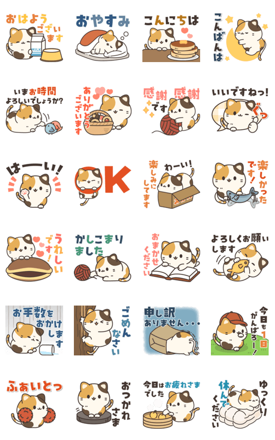 丁寧&敬語で使いやすい!可愛い三毛猫のポップアップスタンプです♪