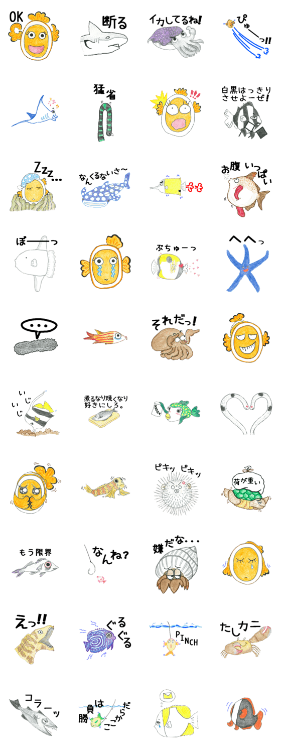 沖縄の美しい海の住人たちが、あなたの気持ちを代弁!沖縄好き、海好き、魚好きのみなさん、楽しいスタンプライフを送ってね。