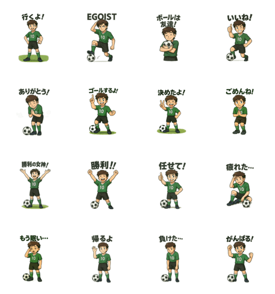 元気いっぱいのサッカー少年が気持ちを伝えるスタンプ 日常で使いやすい言葉がいっぱい! 明るく前向きな表情で、トークを楽しく盛り上げます