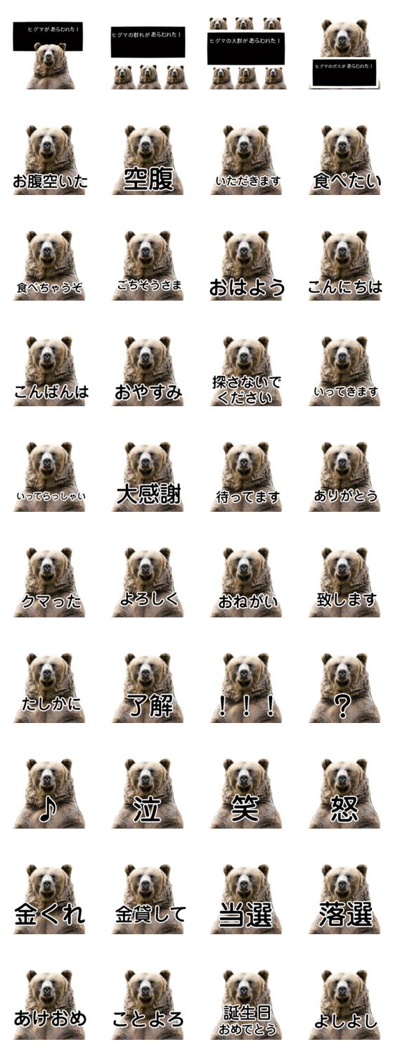 毎日使えるヒグマのスタンプ【熊・クマ】。/くまさん/クマさん/毎日使える/ずっと使える/相槌返信/年末年始/あけおめ/ことよろ/正月/誕生日/挨拶