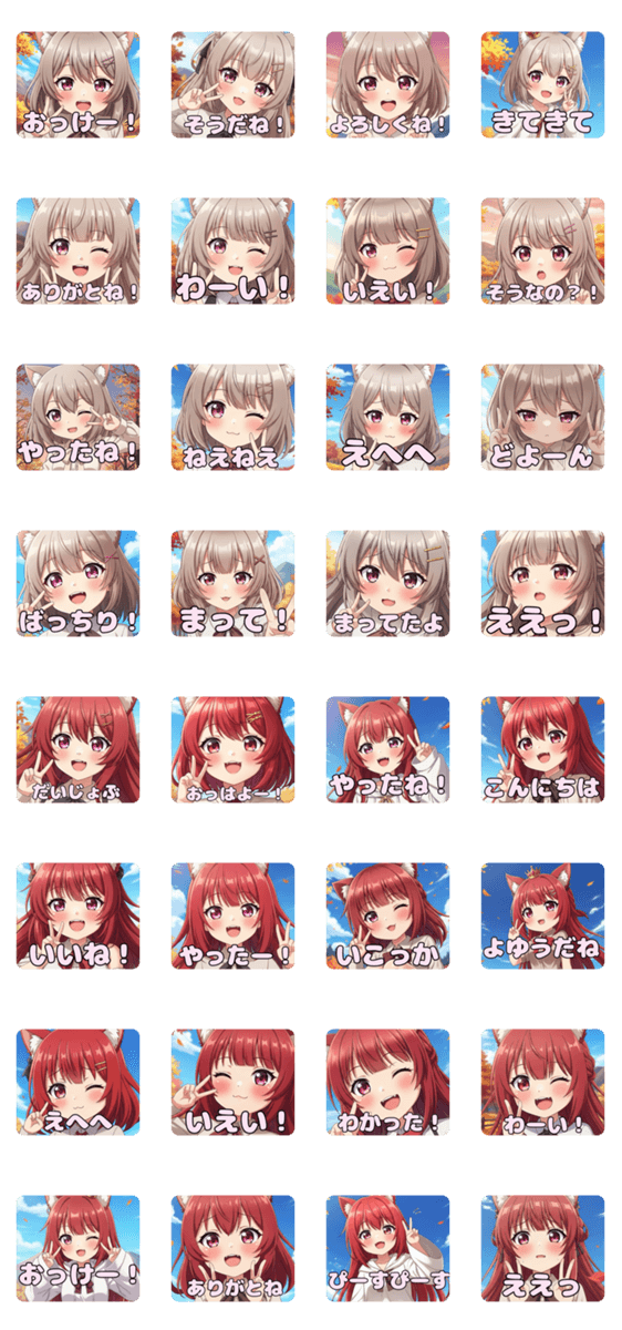 ピーススタンプ(秋)(みなみ&あかみ) -LINEスタンプマニア