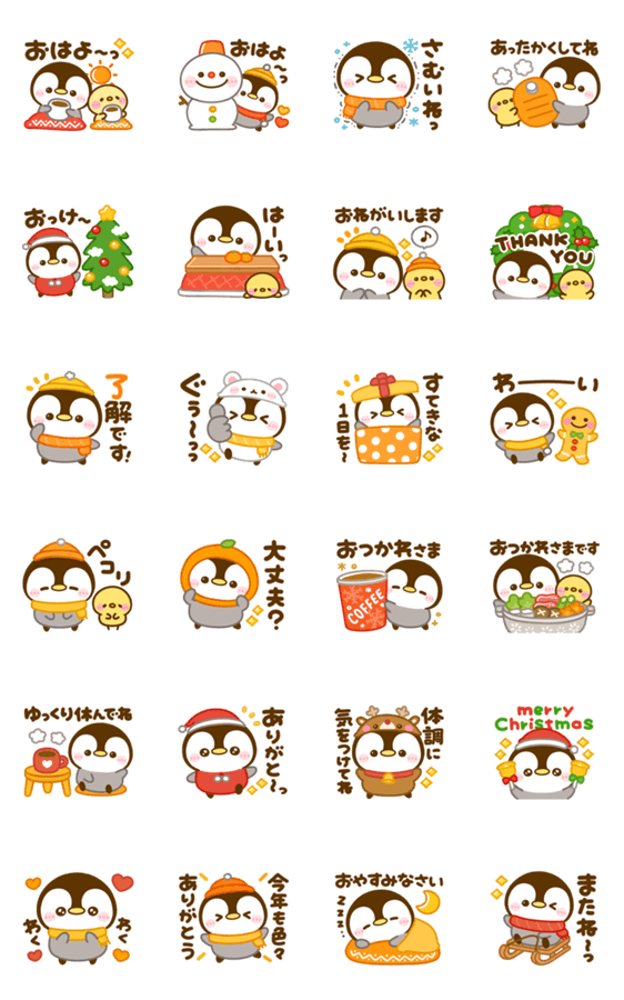 可愛く動くぺんぺんの冬スタンプです。クリスマスにも♪