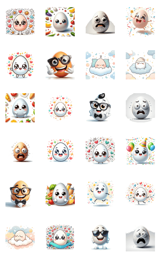 笑顔のたまご、ねむいたまご、おこりんぼうたまごなど、かわいい表情がいっぱい!トークをもっと楽しく彩ろう!