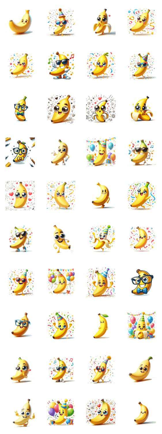 このキュートでユニークなバナナスタンプでチャットをもっと楽しく!明るくて愉快な気分を伝えるのにぴったりです。