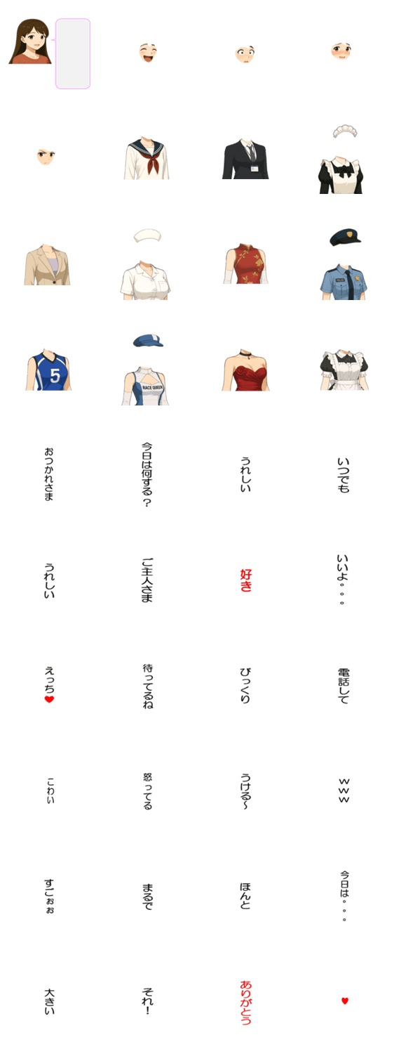 ある意味コスプレ? 服も文字も表情も!アレンジ機能で無限に楽しめます。