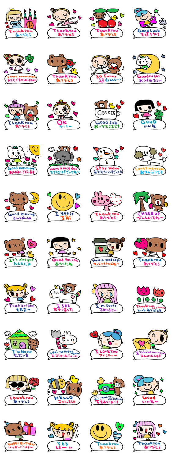 シンプルな日常会話スタンプです。お気遣いスタンプ 日本語英語スタンプ