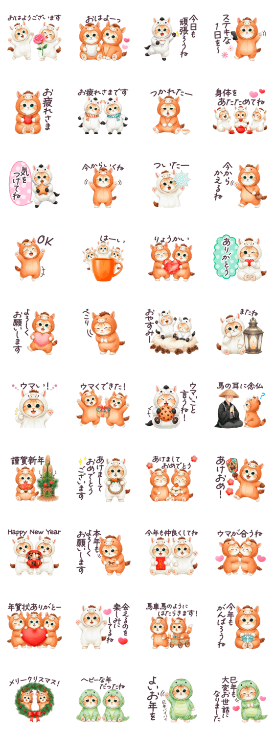 冬 年末年始 ウマ コスにゃんず 午年 馬 -LINEスタンプマニア