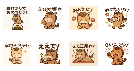 2026年の干支「午(うま)」が、かわいい関西弁で新年を盛り上げてくれるスタンプです!
