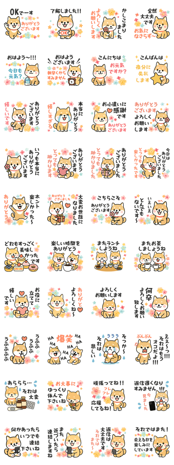 柴犬♡長文スタンプ・感謝多め・毎日使える・敬語・可愛い・わんこ・花・お花