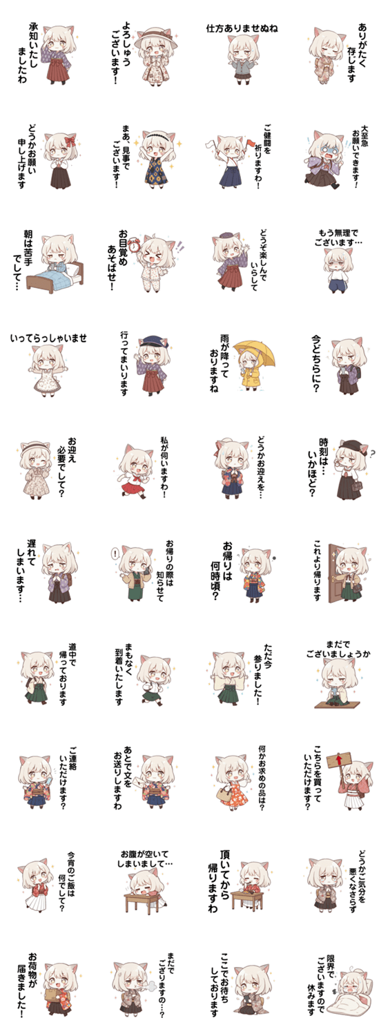 ハイカラコスプレの白子さんが、明治・大正ロマンの言葉で日常会話をするフレーズスタンプです!